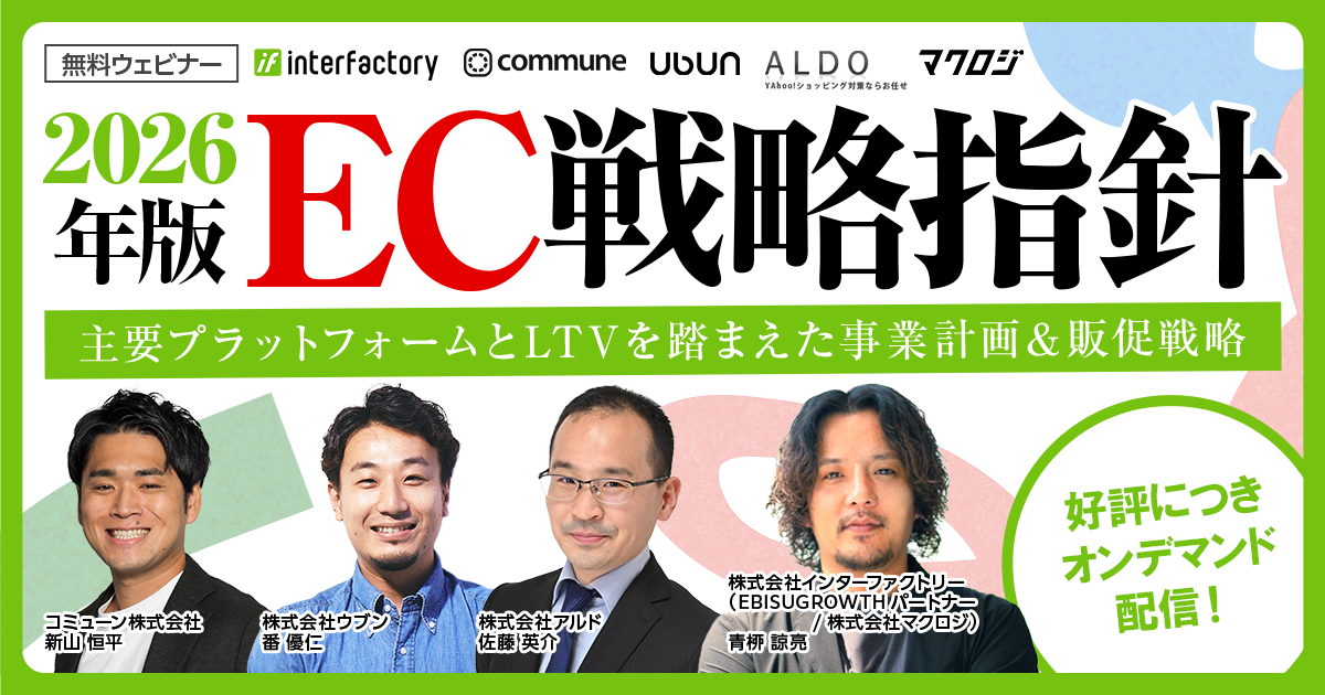 本ウェビナーでは、2026年に成果を上げるための「EC事業計画と販促投資の考え方」を、楽天市場・Yahoo!ショッピング・Amazon・LTVの視点で具体的に提示します。