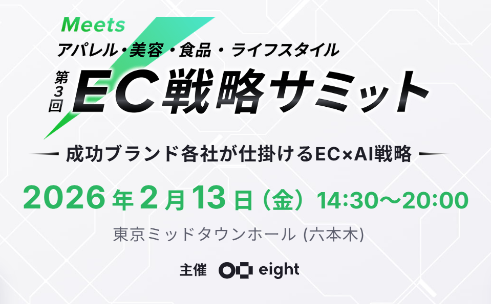 クラウドコマースプラットフォーム「EBISUMART(エビスマート)」を提供する、株式会社インターファクトリー(本社:東京都千代田区、代表取締役社長 兼 CEO:蕪木 登、以下 インターファクトリー)は、2026年2月13日(金)にEight(Sansan株式会社)が主催する「Meets 第3回 EC戦略サミット」に、シルバースポンサーとして協賛するとともに、「ソリューションピッチ」にて執行役員 清水が登壇いたします。