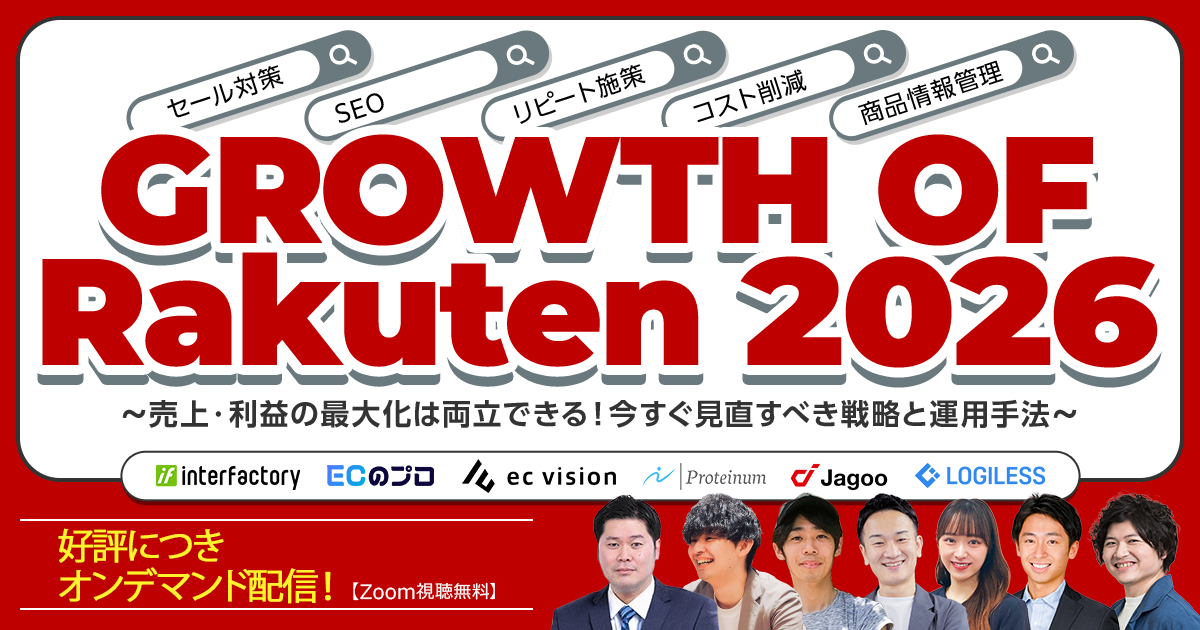 「最近のアップデートについていけているか不安」「どの領域から手を付けるべきか整理したい」そんな楽天市場担当者の方に向けて、2026年に押さえておくべき最新論点を一気に把握できる内容となっています。ぜひこの機会にご登録ください。