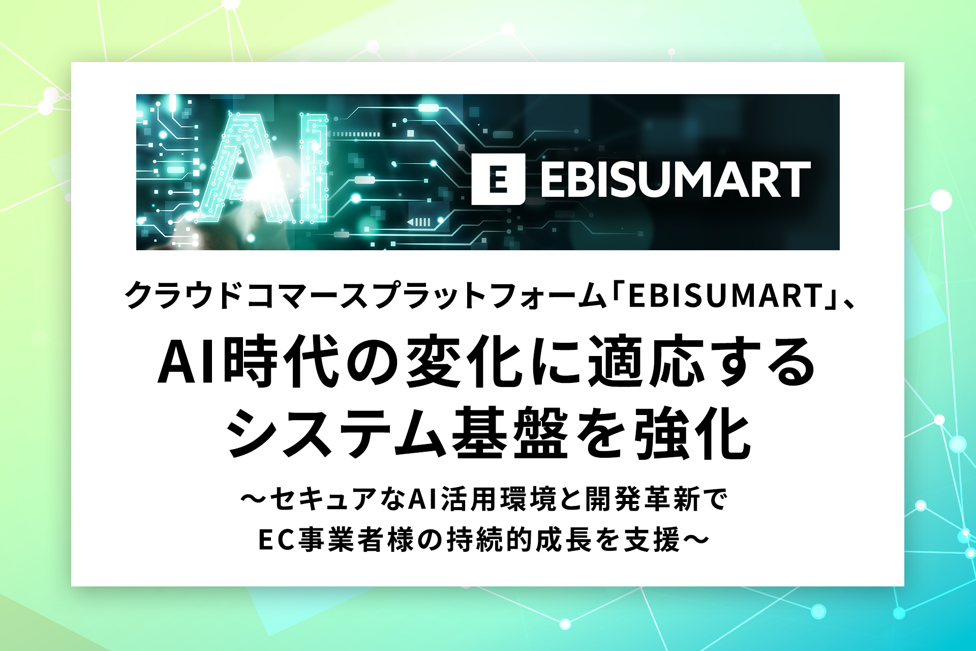 EBISUMARTは個別の機能拡充に留まらず、AIが市場動向や顧客行動をリアルタイムに解析し、常に最新のビジネス状況に適合し続けるプラットフォームへの進化を加速させています。